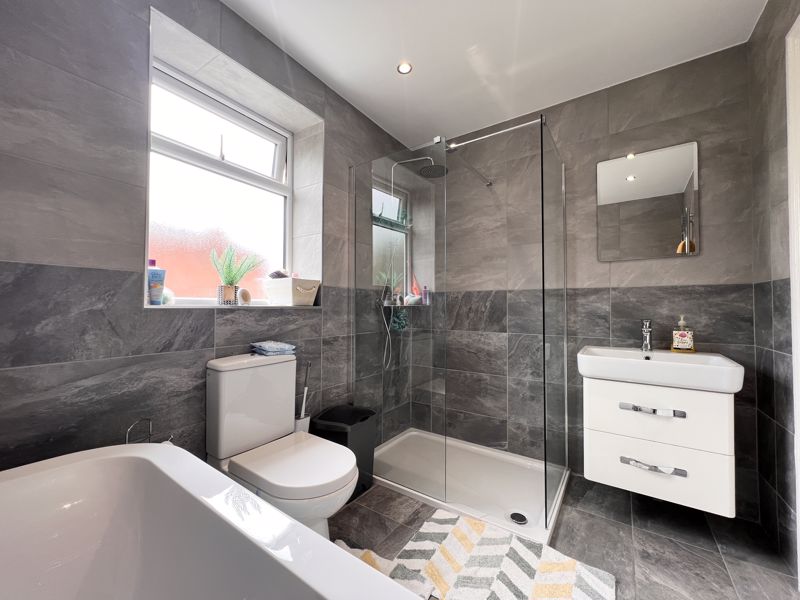 • BATHROOM with bath, separate shower, basin & WC