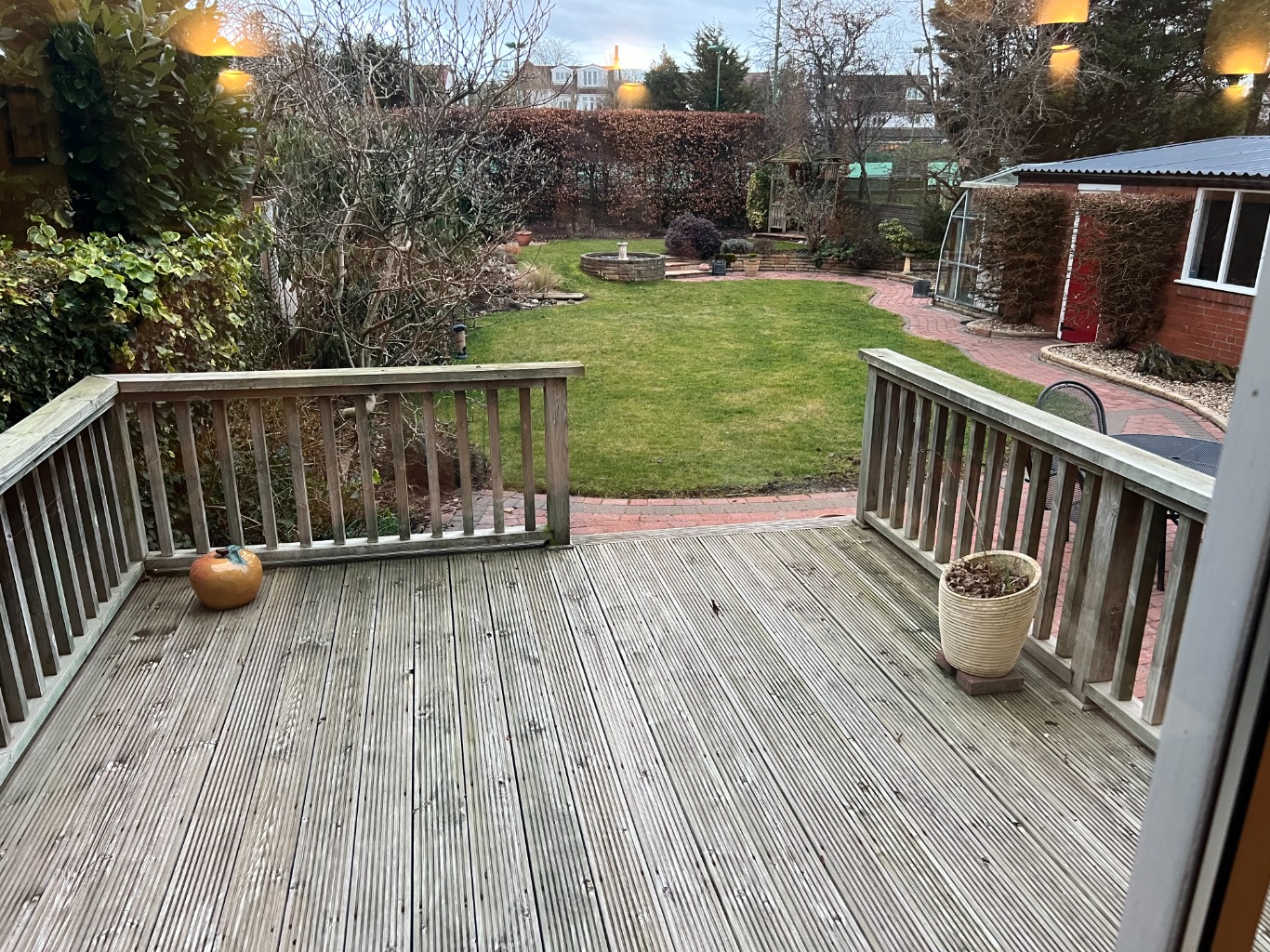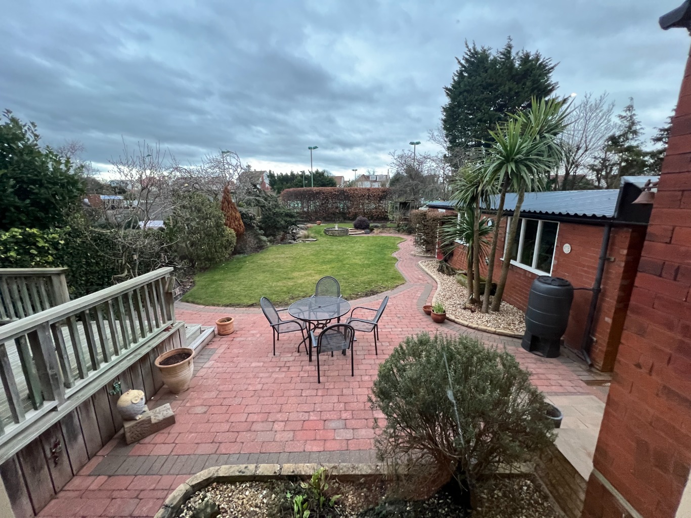 Seclude garden with decking area, patio and table and chairs. EPC rating: Unknown. Council tax band: X,