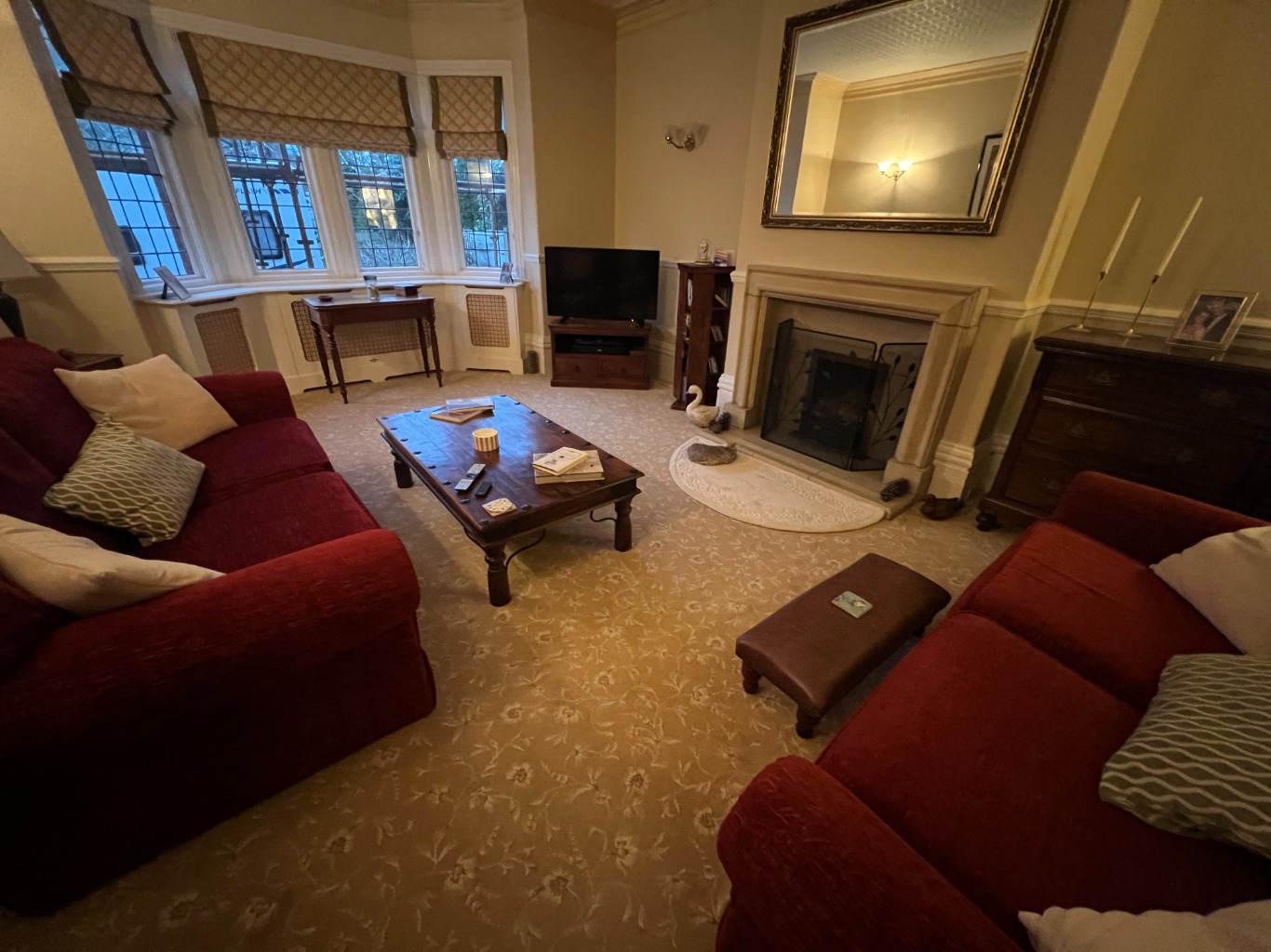 – Sitting Room with coal fire, 2 large sofa’s, coffee table and TV.