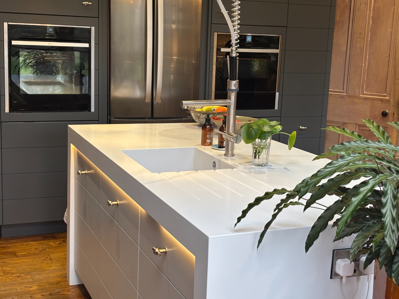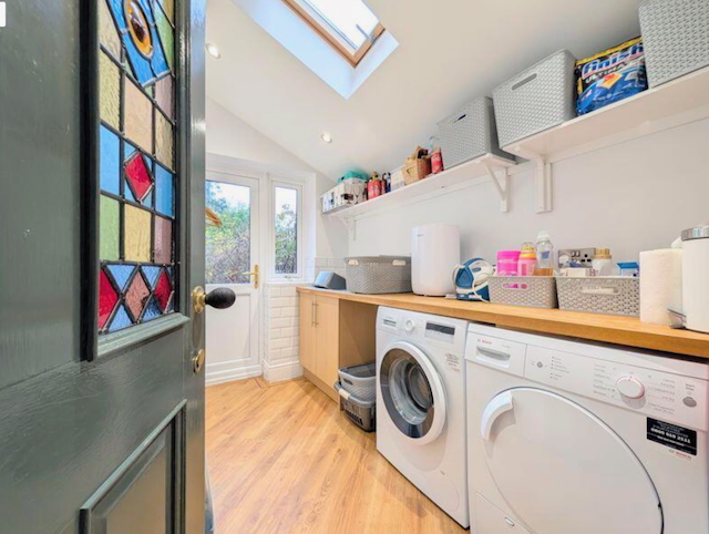 – Utility with washing machine, tumble dryer and sink unit.