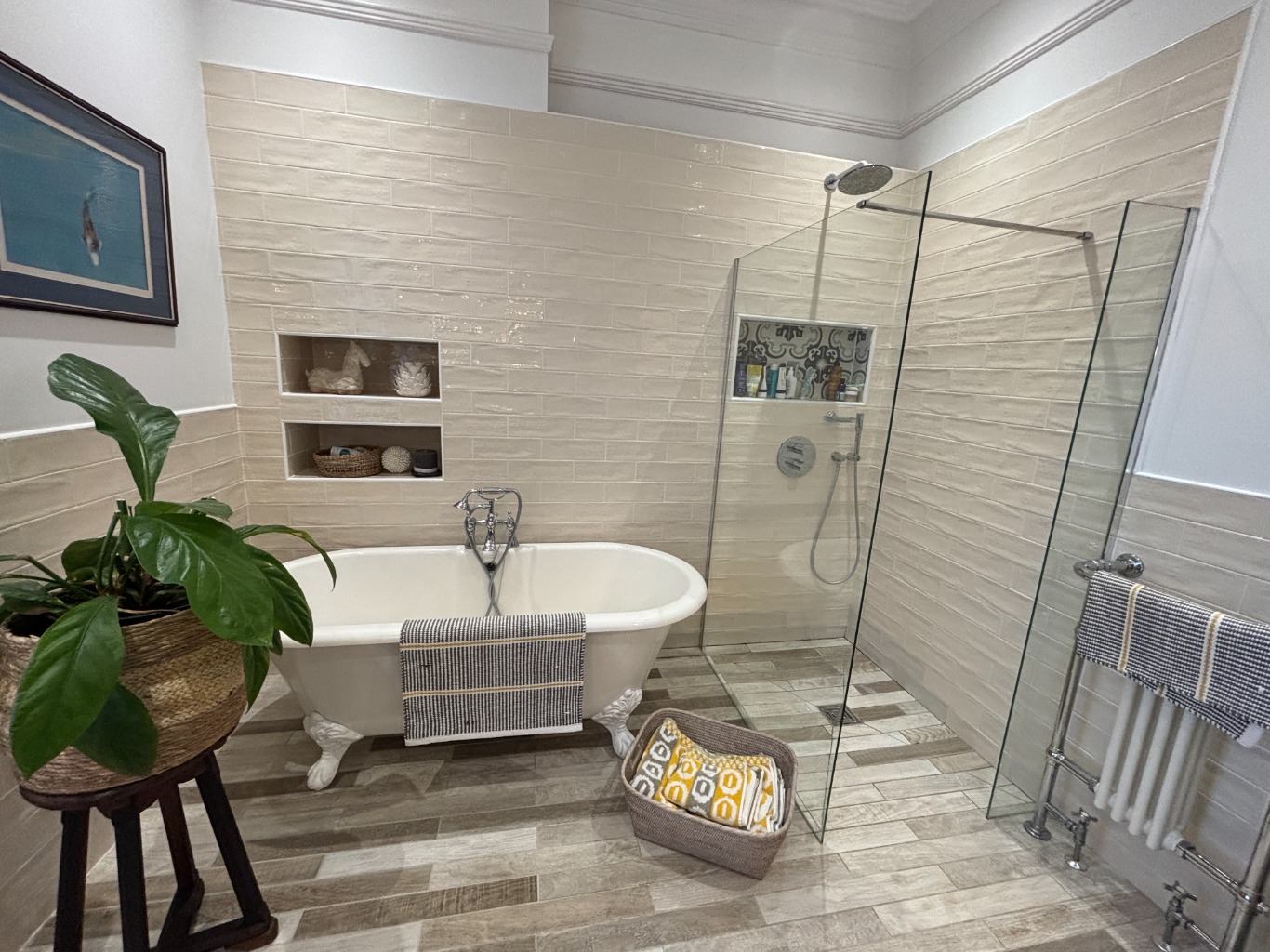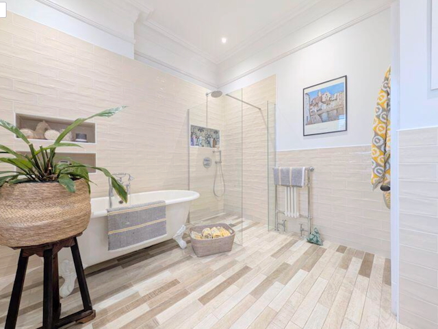 – Bathroom with bath, separate shower unit, WC and hand basin