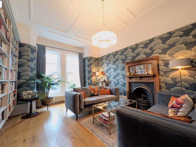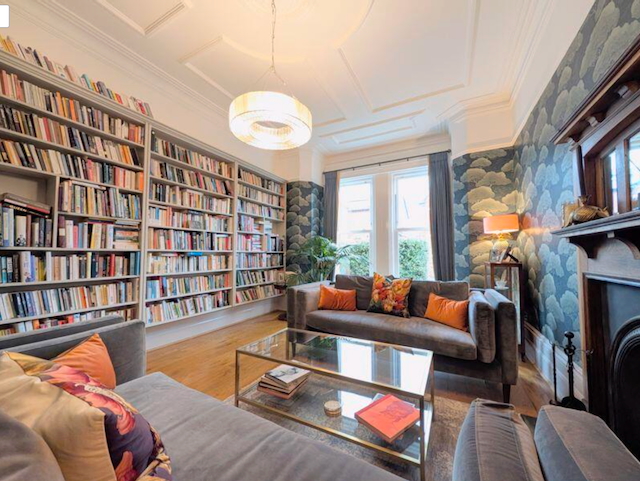 – Lounge with floor to ceiling bookshelves, 2 sofas and open fireplace.- the owner would be prepared to add a single or double bed to this room so offering it as a 5th BEDROOM if required