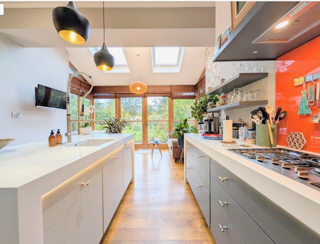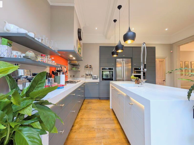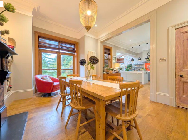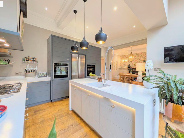 – Kitchen/Diner/Sitting room with all modern appliances including wall mounted double oven, gas hob, microwave, fridge freezer, dishwasher and coffee machine. Seating area with 2 seater sofa and 2 chairs by bifold doors that lead onto the rear garden. Large dining table with 6 chairs.
