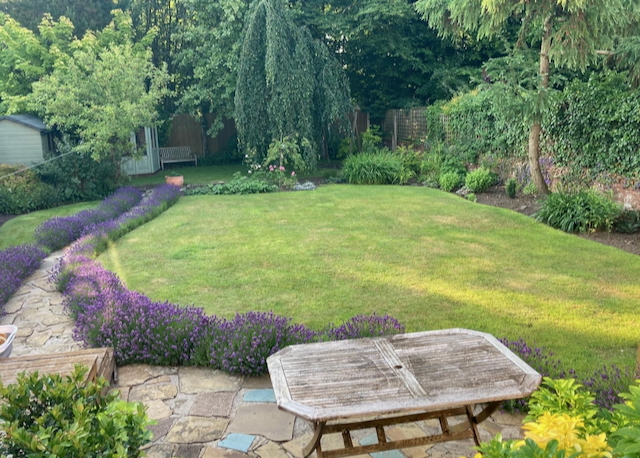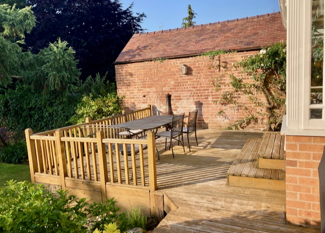 Private, secluded and beautifully manicured rear garden with patio, table and chairs, Weber BBQ and chiminea