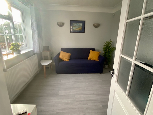 • BEDROOM 3 – currently a snug with bed settee, smart TV, THIS ROOM IS ACCESSED THROUGH THE SITTING ROOM and the owner would consider providing a double bed on request.