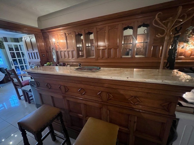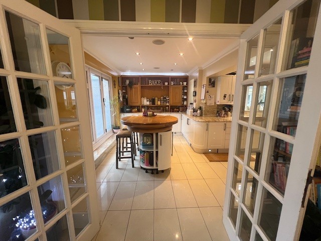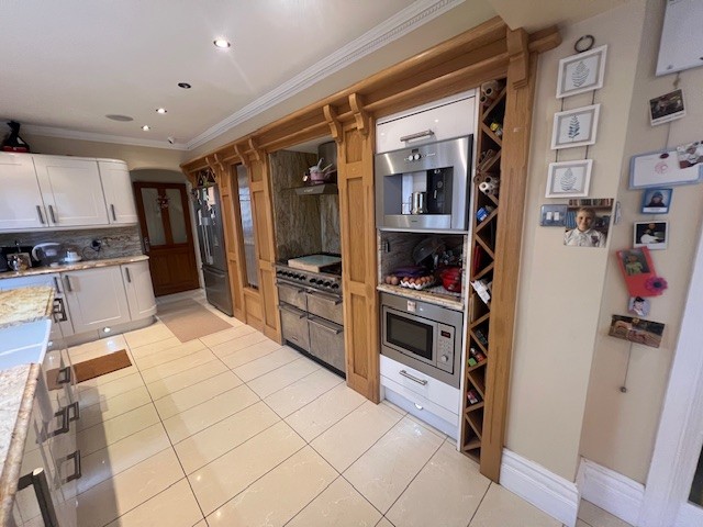 – Kitchen: includes gas hob, double oven, fridge freezer with ice maker, microwave, hot tap, air fryer, coffee machine, dishwasher and wine cooler. Padded window seat with table and chairs seats 6, there is also a breakfast bar that can seat 7/8 and a bar area with bar stools. There are bi-fold doors onto the seated patio area.