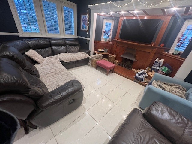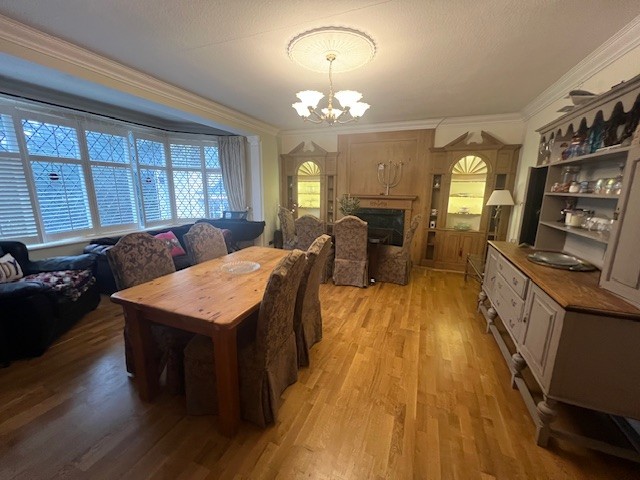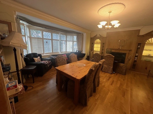 – Dining Room: Large dining table seats 8 (can be split in to 2 x 4 seats) 2 seater sofa and armchair, open fireplace.