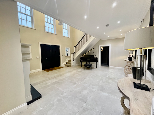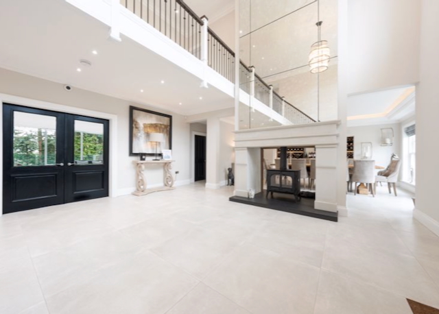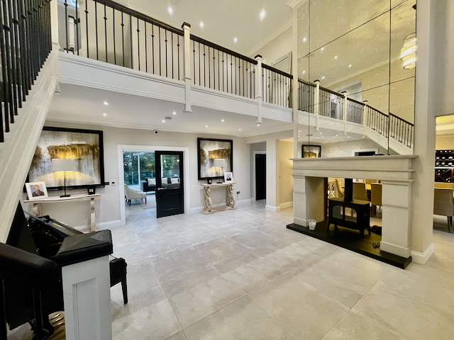 • GRAND ENTRANCE, Large entrance with Grand piano, underfloor heating and log burner is also opens onto the dining area.