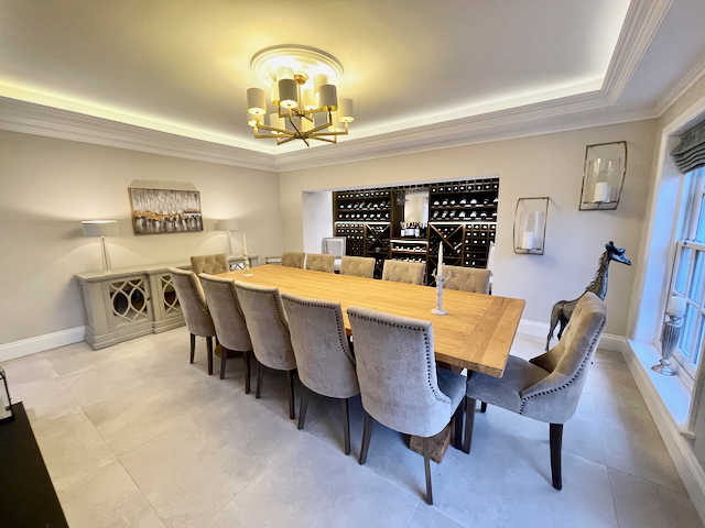 • DINING ROOM AREA, dining table and chairs for up to 12 and large integrated wine rack.