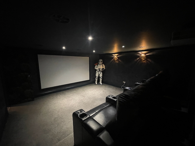 • SNUG / TV ROOM with wall mounted TV and L shaped sofa.