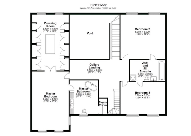 FIRST FLOOR- sweeping staircase leading to galleried landing