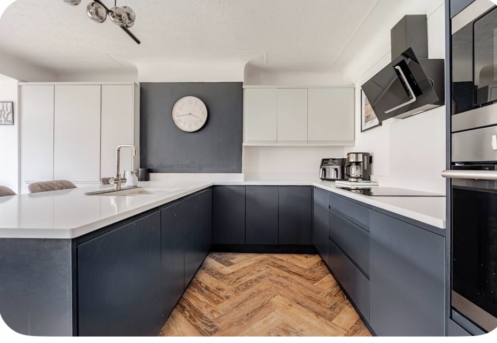 • KITCHEN/diner/sitting room with all modern appliances including 2 wall mounted electric ovens, induction hob, island with 4 chairs, dishwasher, microwave, grill, hot tap, coffee machine, air fryer, extendable table, bench and chairs for 8, smart TV, corner sofa
