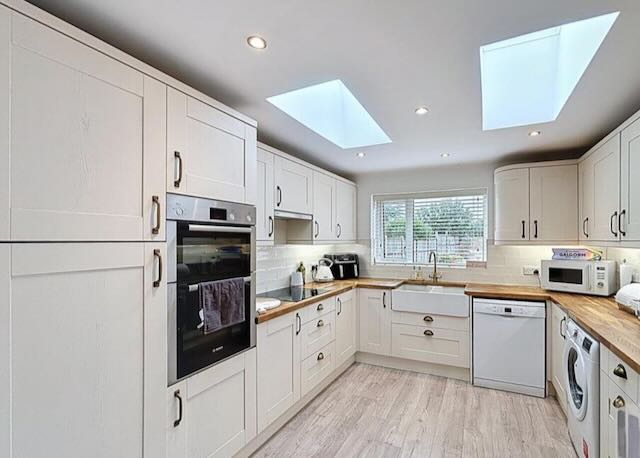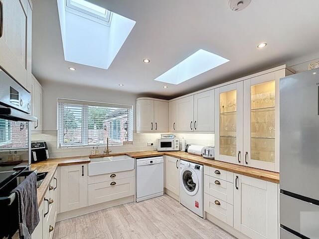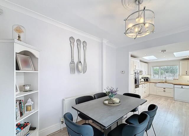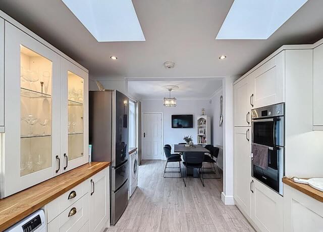 • KITCHEN/DINER – open plan with all modern appliances including 2 wall mounted ovens, induction hob, microwave, dishwasher, air fryer, washing machine and tumble dryer. There is a Table and 6 chairs and a wall mounted TV and back door onto the rear patio and garden.