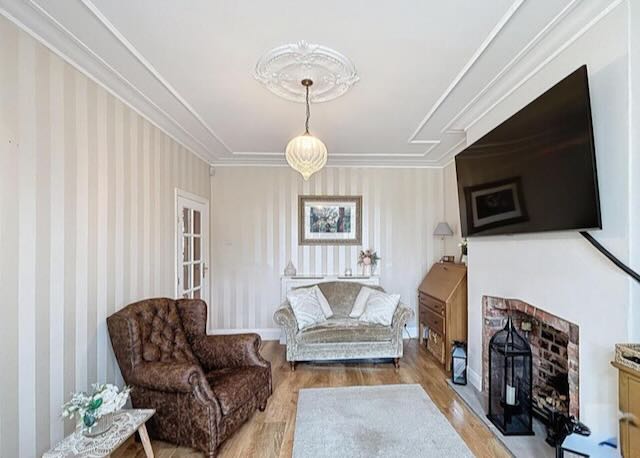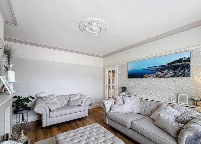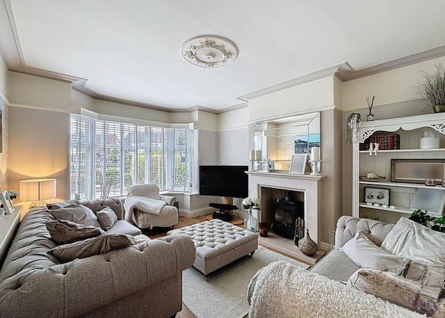 • SITTING ROOM with 2 sofas and large wall mounted TV.