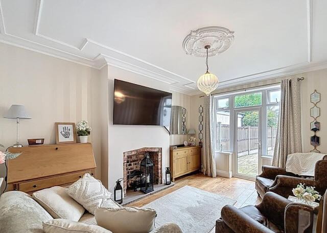 • SNUG / TV room with sofa and wall mounted TV and patio doors onto the rear garden