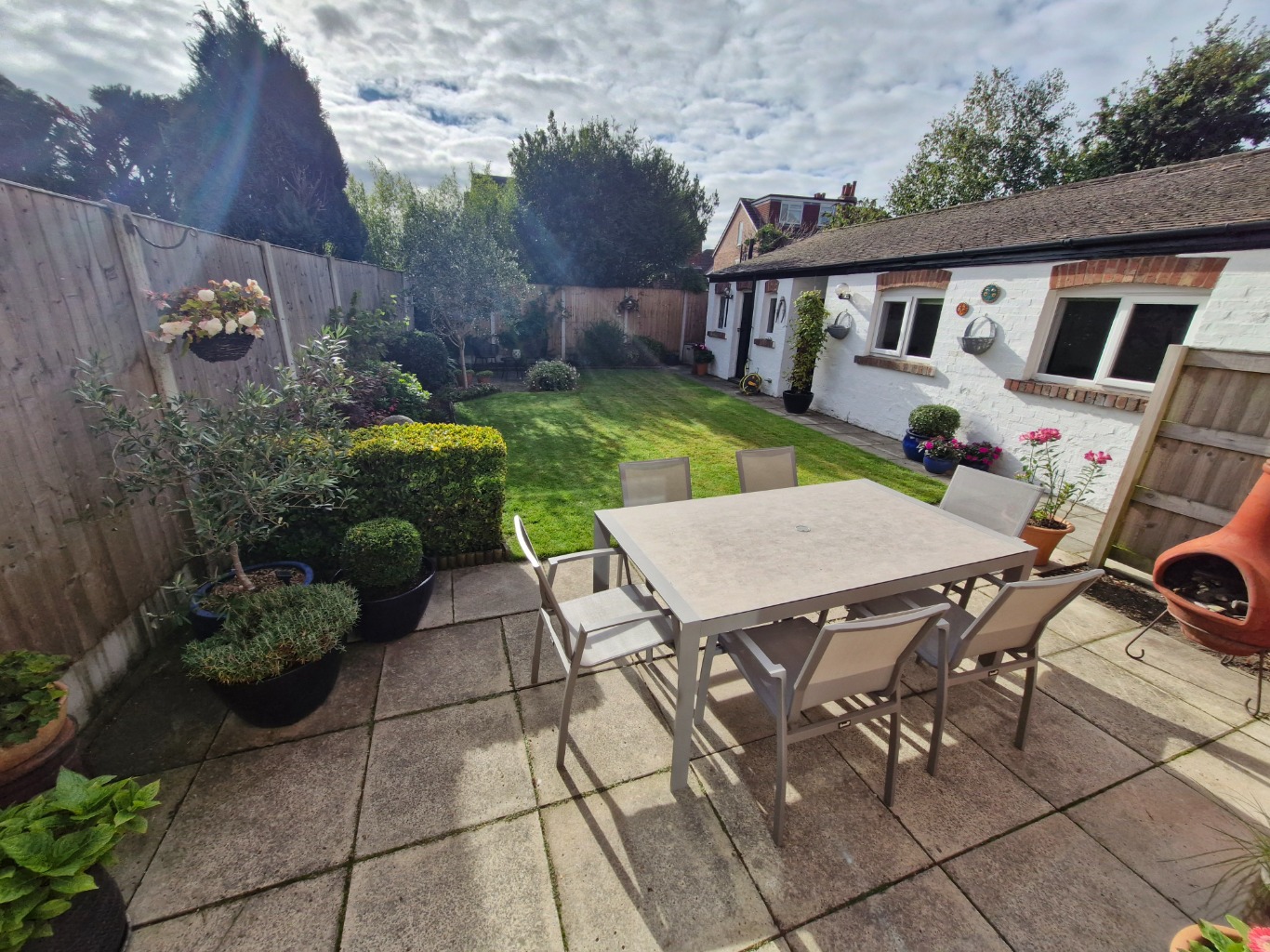 To the rear of the property, there is an enclosed lawned garden, with patio area, table and seating for 6.