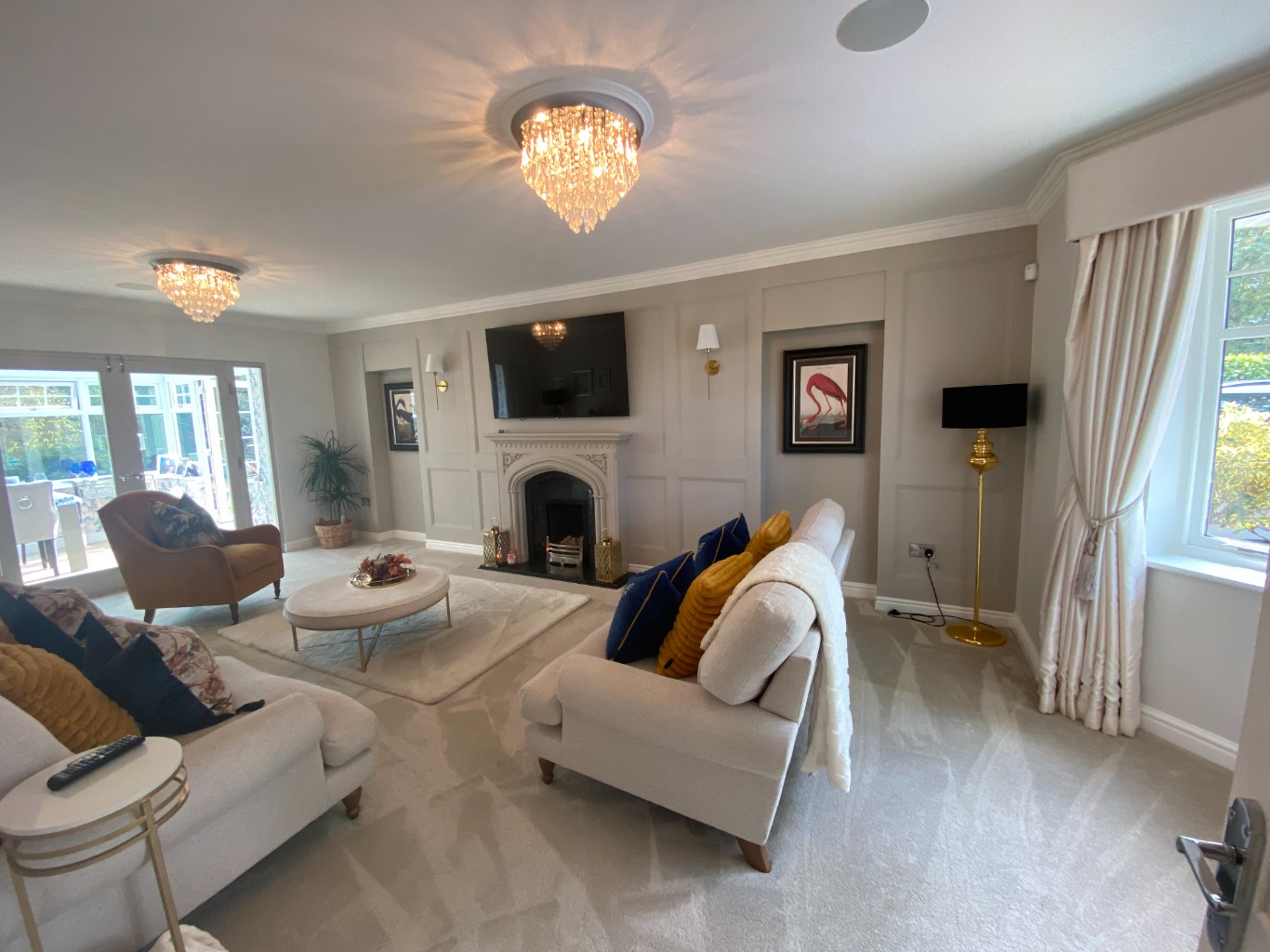 • SITTING ROOM – 2 sofas, chair, gas fire, smart TV opens onto the Orangery.
