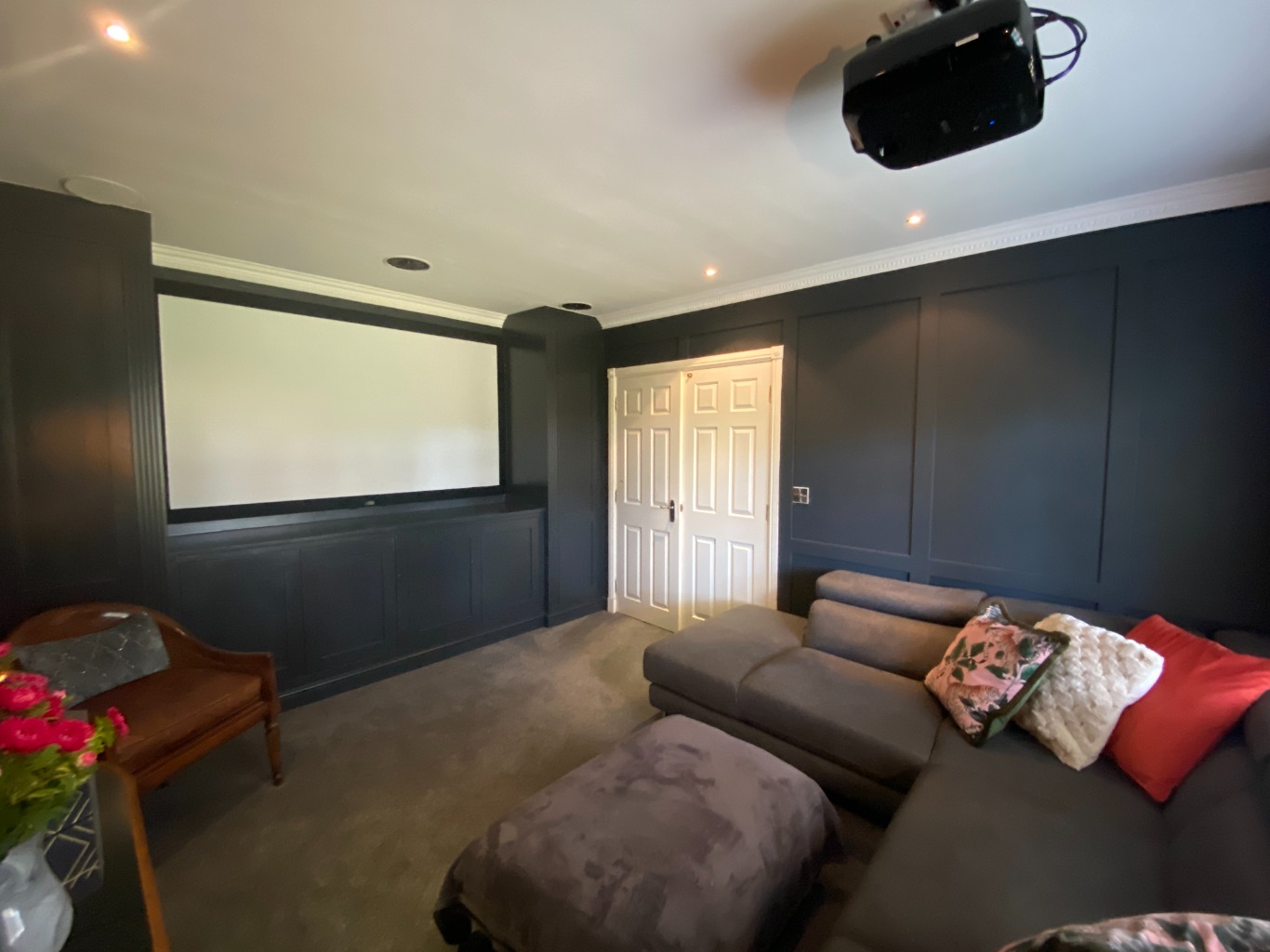 • CINEMA ROOM – projector, large L shaped sofa for 6 and stool .