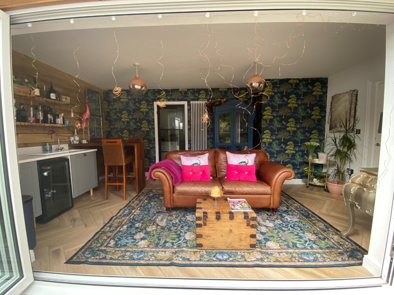 • BAR / SNUG – sofa, wine cooler, fridge, breakfast bar and 4 stools, bi folding doors to the garden.