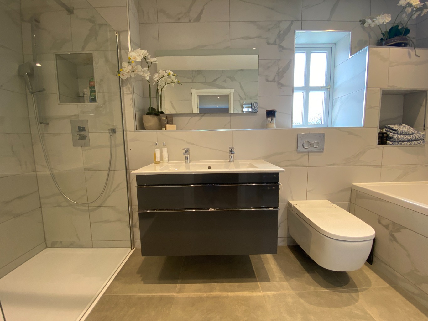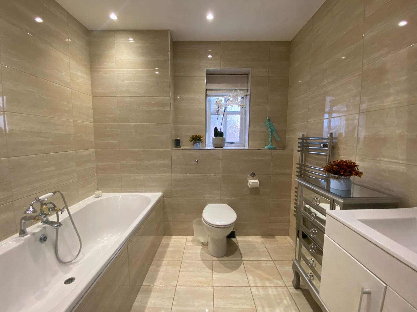 • BEDROOM 2 – super king size bed, smart TV, en-suite bath, separate shower, basin & WC.