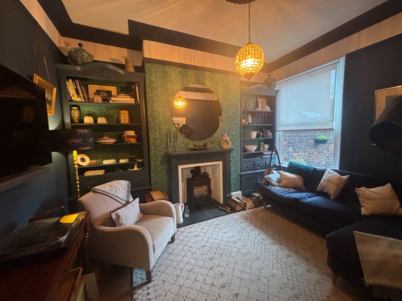 • SNUG / TV room with corner sofa, occasional chair, smart TV, log burner