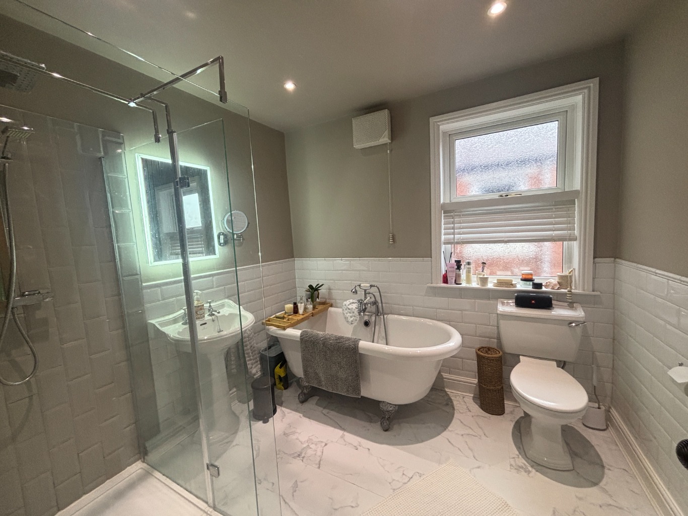 • BATHROOM with bath, shower attachment, separate shower, basin & WC