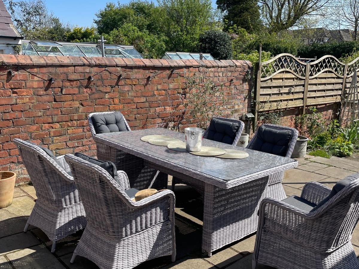 • Private secluded rear garden. Garden furniture, Patio, BBQ, small pond