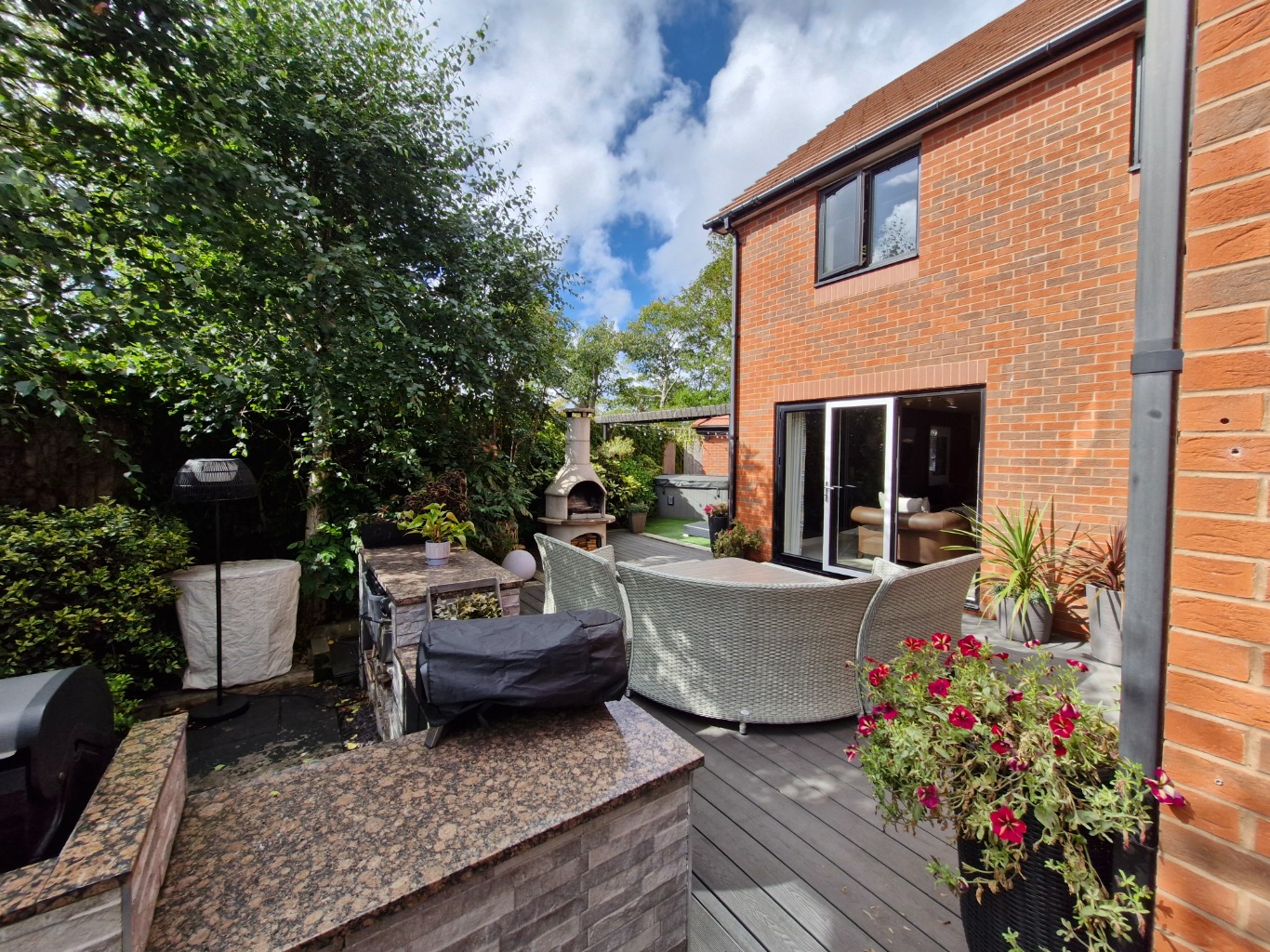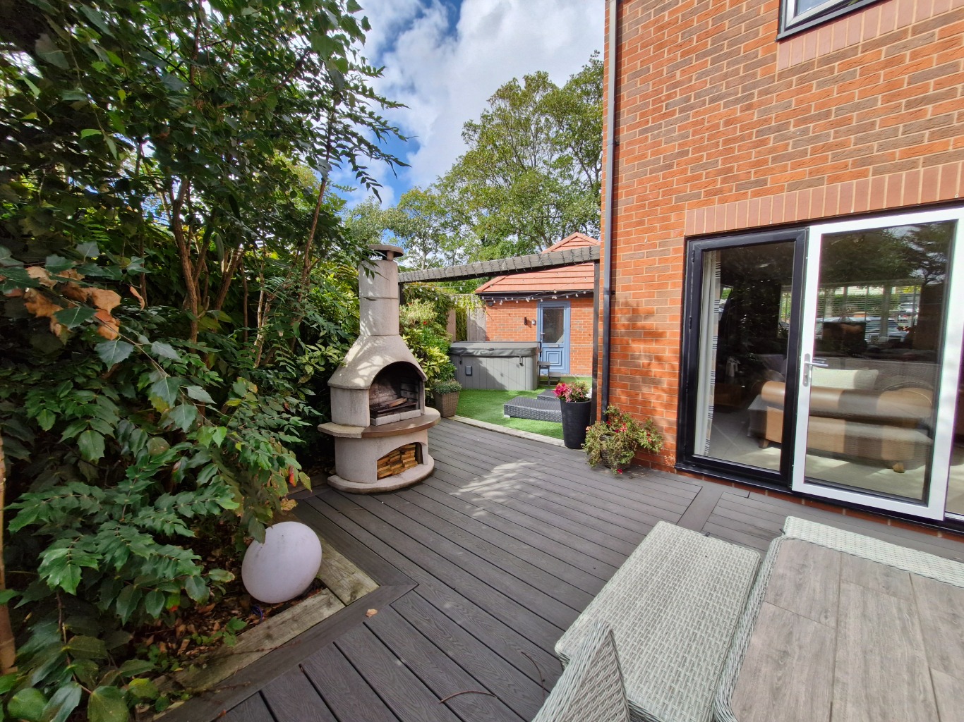 To the rear of the property, there are doors from the kitchen and lounge, leading to a beautiful, enclosed garden, with ample seating and table. It has a purpose-built BBQ area, chimenea and hot tub.
