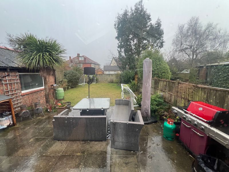 Rear garden with table and seating for 12.