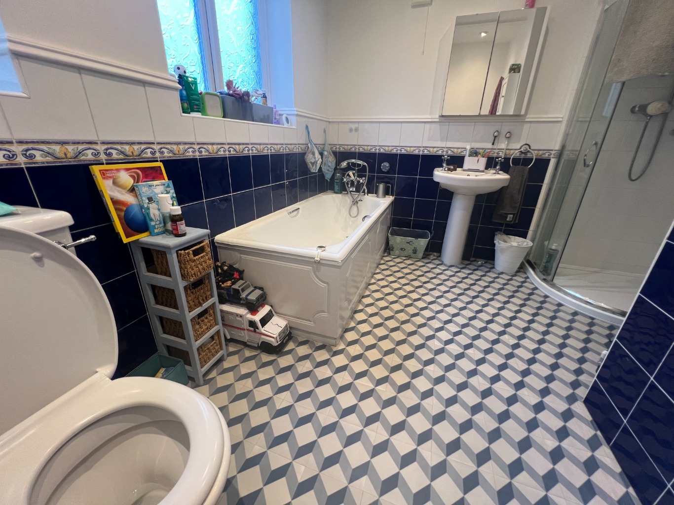 – Bathroom: Bath with separate shower, wc and basin