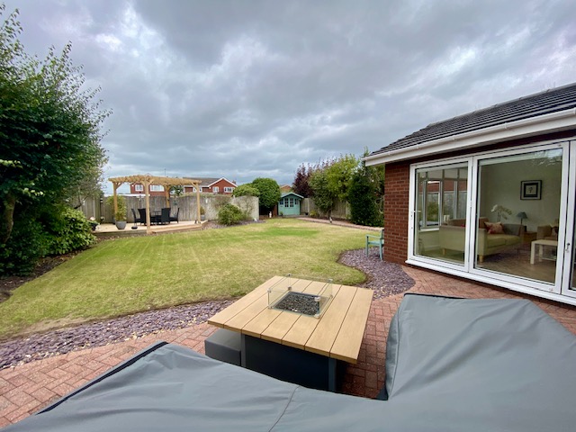 • Private, secluded rear garden with patio, outdoor furniture including BBQ , table, chairs and a firepit.