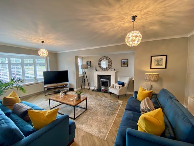 • SITTING ROOM – 2 sofas, occasional chair, gas fire, smart TV