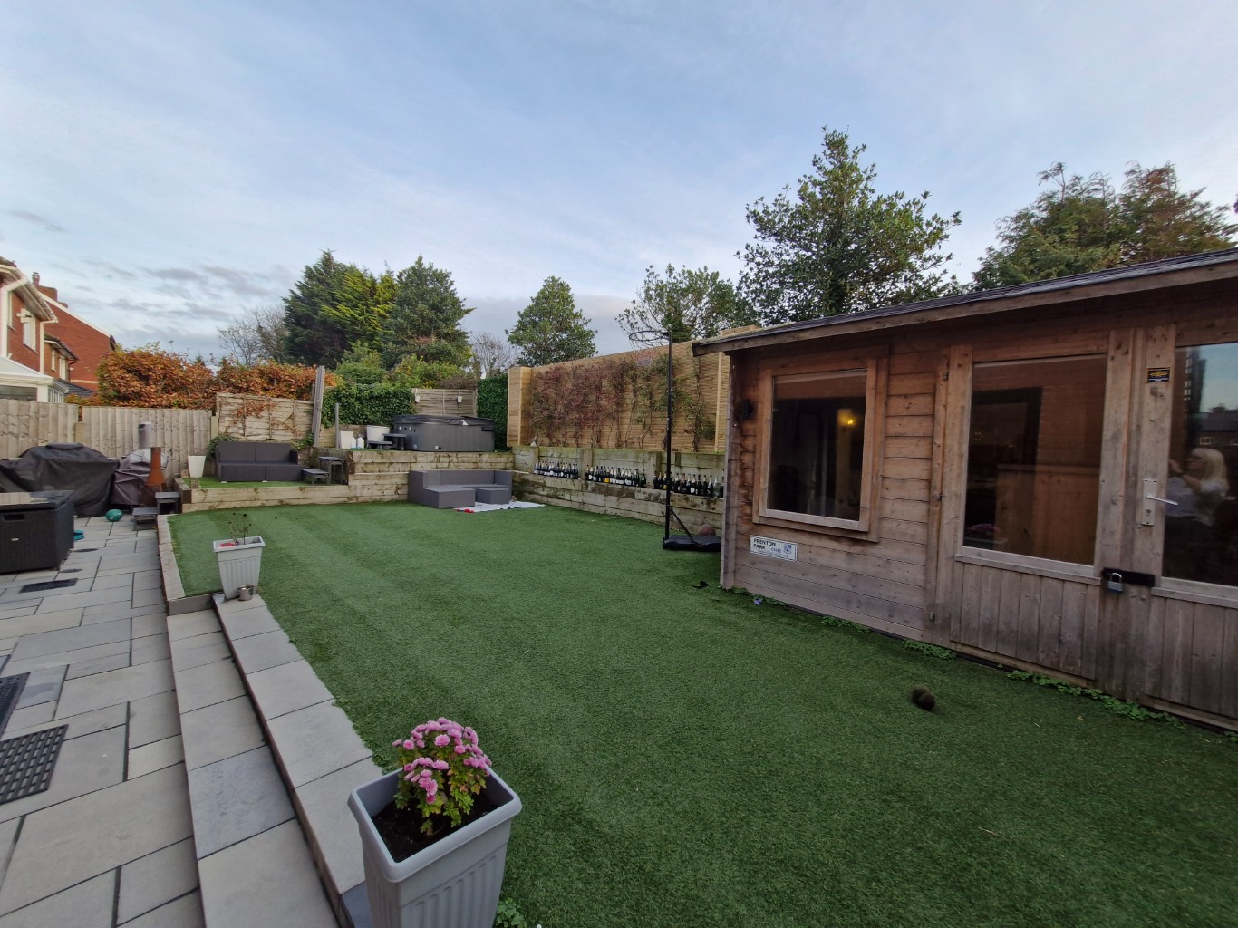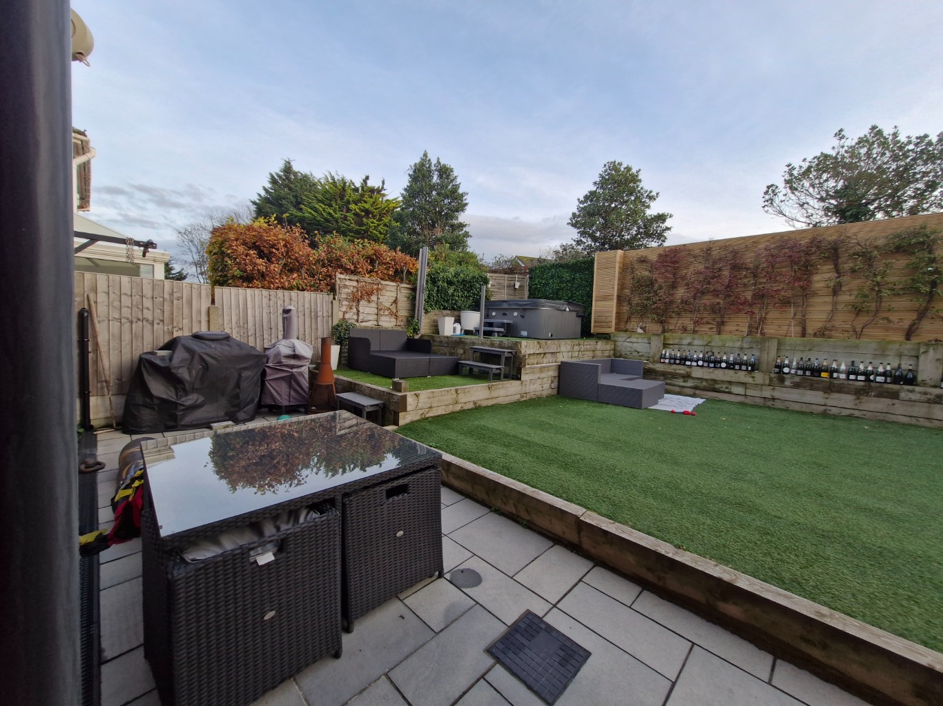 • To the rear of the property, there are patio doors from the kitchen and dining room leading to an enclosed, lawned garden, with raised patio area and seating with hot tub and barbecue.
