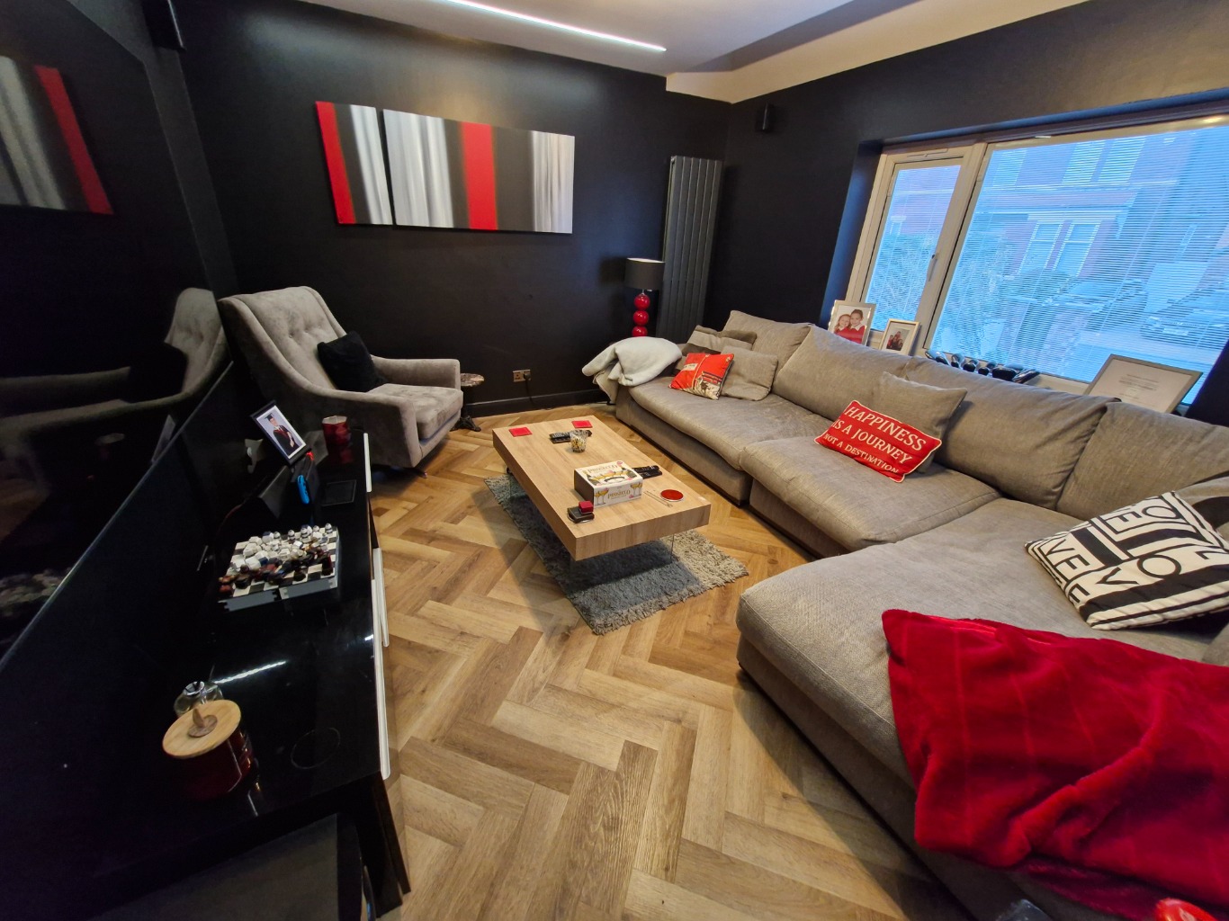 • SITTING ROOM with sofas 5 and large wall mounted SMART TV.