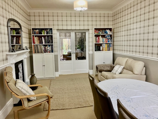 • DINING ROOM with table and chairs for 8/10 and double doors opening onto the sitting room.