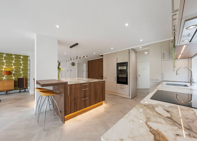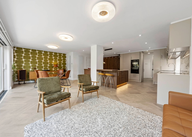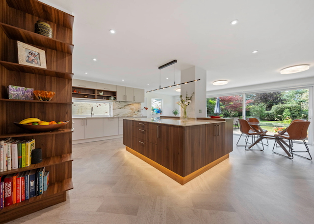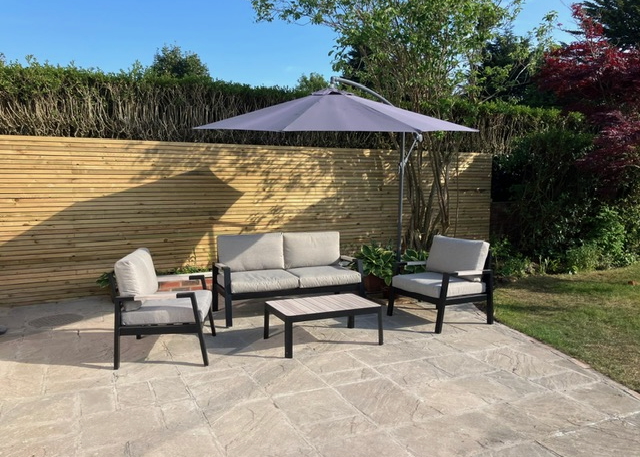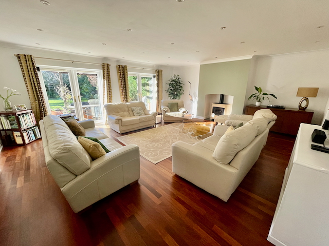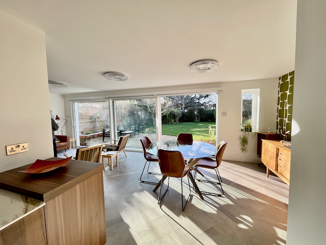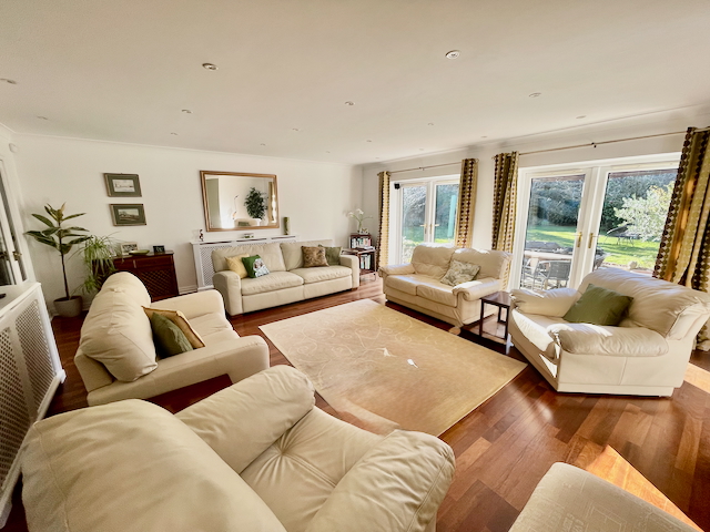 • KITCHEN / DINING / SITTING ROOM which includes: wall mounted oven and microwave oven, fridge, dishwasher, hot water tap, coffee machine, island, and dining table with 4/8 chairs. There is a sofa and 2 armchairs (and the owner will add a TV with Sky sport if required). There are sliding patio doors that open onto a large patio with 2 seating areas and a private rear garden.