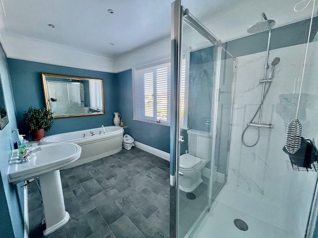 • BATHROOM – bath, separate shower, basin and WC