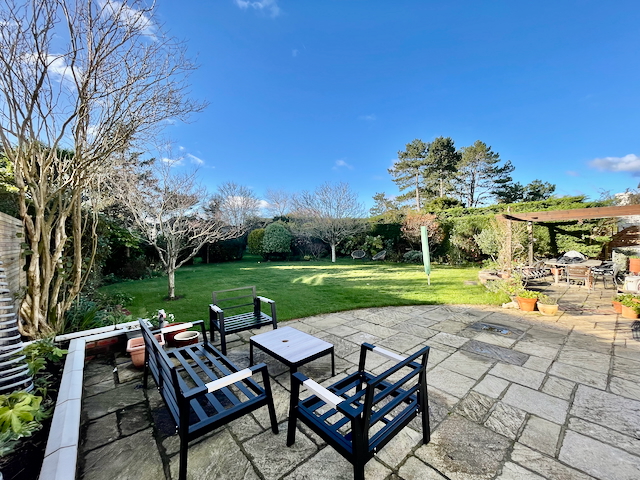 • Large private rear garden with patio area, garden furniture and BBQ, outdoor dining area with table and chairs for 8/10
