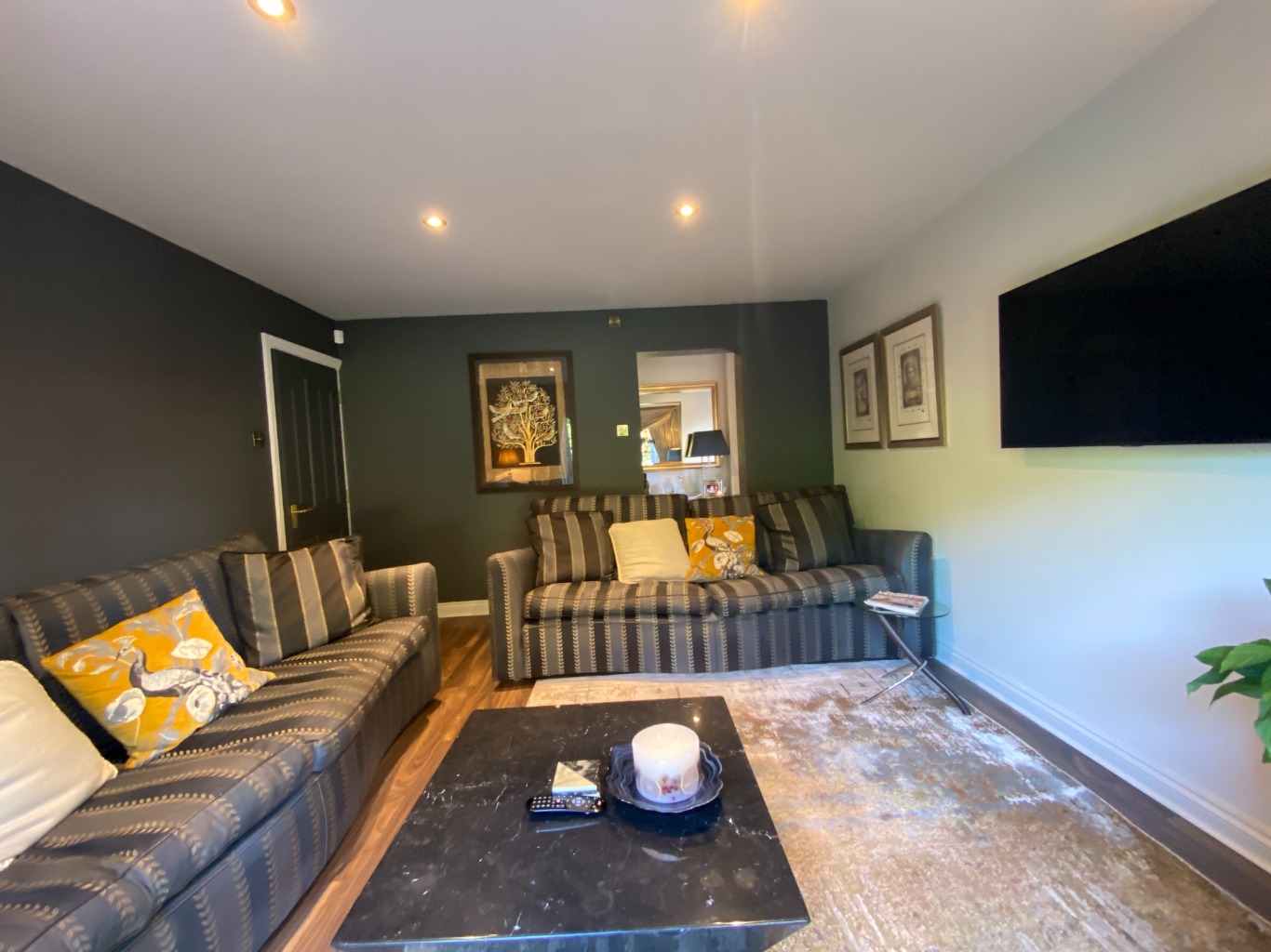 • SITTING ROOM – 2 sofas, smart TV with Sky Sports, leading to small snug with chairs.
