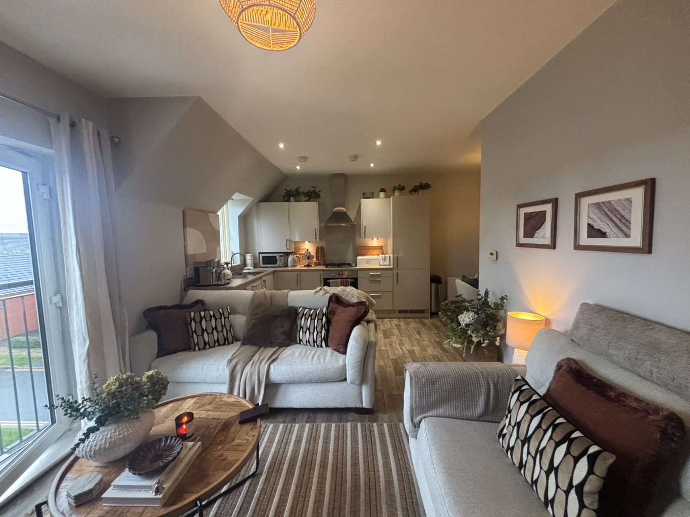 A very welcoming and inviting 2 bedroom, 2 bathroom 3rd floor apartment on a residential housing estate 2.7 miles from Royal Birkdale Golf Course. Birkdale village is a 5 minute drive for some great restaurants. Verity’s is recommended. Locally there is Hickory’s smokehouse, a spar and fish and chip shop. The property offers an allocated parking space, Sky sports and all furnishings are only 12 months old