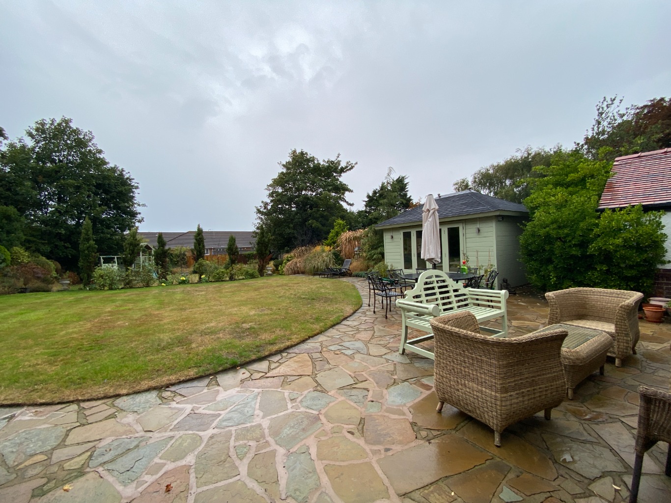 • Private garden with Summerhouse, sofa, table and 2 chairs, patio, outdoor furniture including BBQ, table, chairs.